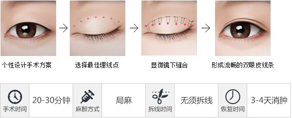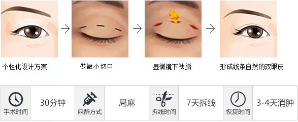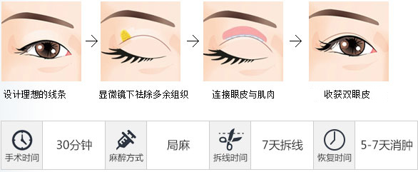 适合人群眼部轻微下垂、眼皮皮肤薄、有弹性,脂肪少的情况。